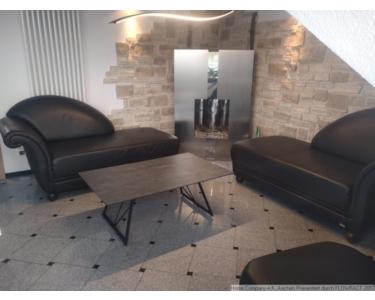 Auch die Gemütlichkeit kommt nicht zu kurz, wenn man an den kalten Tagen, auf der schwarzen Ledergarnitur liegend, sich am Kaminfeuer erwärmt.
