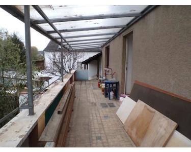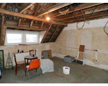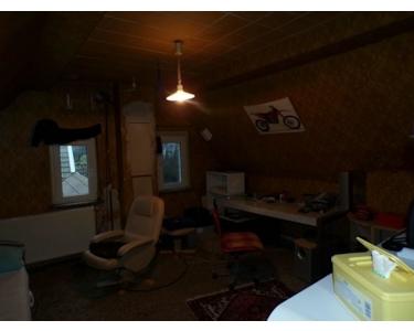 Bei dem Objekt handelt es sich um einen großes Reiheneckhaus mit Anbau, großem Nebengebäude, in welchem sich 2 Garagen und ein Fahrzeugschuppen befinden. Der Garagenteil des Nebengebäudes ist unterkellert. Der Außenbereich ist durch eine Mauer mit einem großen Tor in einen Vorhof mit 2 Stellplätzen und einer Grünfläche mit einem Lagerzeltbereich vom Innenhof getrennt. Das Nebengebäude (Garagen und Fahrzeugschuppen) und der EG des seitlichen Anbaus, sowie der Hauskeller haben ihre Zugänge alle in diesem Innenhof. Die große Küche befindet sich im EG dieses Anbaus. Neben dem großen Wohn-Esszimmer befinden sich noch eines der beiden Bäder und das Arbeitszimmer im EG. Im I.OG befinden sich das 2.te Wohnzimmer, das große Schlafzimmer, sowie ein Zimmer als 2.tes Esszimmer oder 2.tes Schlafzimmer und eine Wohndiele, sowie des 2.te Bad. Über den großen und überdachten Balkon kann der Bereich des Anbaus im I.OG (über der Küche) erreicht werden. Der dortige Raum ist jedoch noch nicht ausgebaut worden. Es existiert eine noch nicht montierte Stahltreppe, die zusätzlich vom Innenhof aus einen weiteren Zugang zu diesem Balkon und dem Raum über der Küche im I.OG herstellen sollte. Diese Treppe wurde jedoch noch nicht aufgebaut. Im II.OG sind noch einmal 3 Zimmer und eine weitere Wohndiele vorhanden. Die Renovierung, welche die bisherigen Eigentümer in den letzen Jahren durchgeführt haben, sind im EG sehr weit fortgeschritten. Auch im I.OG sind bereits die Mehrheit der Räume fertiggestellt oder zumindest im fortgeschrittenen Stadium. Im II.OG sind alle Räume jedoch noch renovierungsbedürftig.