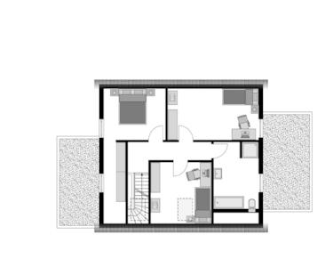 Im Dachgeschoss befinden sich zwei gleich große Kinderzimmer und ein großes Elternschlafzimmer mit Ankleide und einem kleinem Balkon. Komplettiert wird die Etage durch ein großzügiges Badezimmer, welches mit Wanne und Dusche ausgestattet ist.