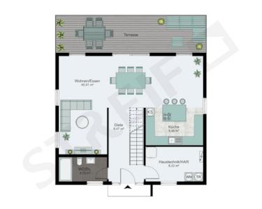 Die gezeigten Fotos und Grundrisse sind Hausbeispiele. Jedes STREIF-Haus wird individuell nach Kundenwunsch geplant und gebaut.