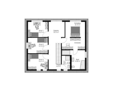 Viel Platz und von Licht erfüllte Räume bietet die Stadtvilla XXL auf 178 m² Netto-Raumfläche für eine Familie mit drei Kindern. Im Erdgeschoss bildet der offen gestaltete Wohn-, Ess- und Kochbereich mit 52,7 m² das Herzstück des Hauses. Der gesamte Wohnbereich wird von drei Seiten mit Tageslicht durchflutet. Die Küche ist übereck angeordnet, so kann sie nicht direkt vom Flur oder vom Wohnbereich aus eingesehen werden. Weiterhin befinden sich ein optionales Duschbad, ein Haustechnik-/Hauswirtschaftsraum, eine schöne Diele sowie ein praktisches Zusatzzimmer (Gäste/Hobby/Schlafen/Kind) im Erdgeschoss. Der Grundriss ist so konzipiert, dass auch bei Krankheit oder im Alter das Wohnen auf einer Etage möglich ist. Das Obergeschoss ist mit drei Kinderzimmern und einem Kinderbad geplant. Der Elternbereich überzeugt mit einem Ankleidebereich und einem Bad en Suite. Der Flurbereich ist als Galerie ausgestaltet.