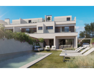 Jedes Haus verfügt über einen privaten Gartenbereich mit Pool und einen Einstellplatz (Porche) für ein Auto auf dem eigenen Grundstück.