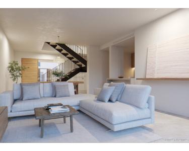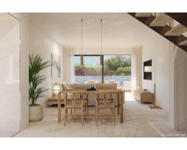 Die Wohnfläche verteilt sich auf zwei Etagen und verfügt über einen offenen Wohn-/Essbereich,