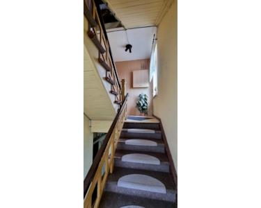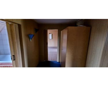 Das Wohnhaus verfügt bereits über zwei Wohnungen, die mit recht überschaubarem Aufwand hergerichtet werden könnten. Die Wohnung im Dachgeschoss benötigt eine etwas höhere Investition. Im Haus wir derzeit nur der gute alte Kachelofen genutzt. Sie sehen auf den Bildern Heizkörper, die aus der Zeit des Betriebes, mit einer Gastherme stammen. Der auf dem Grundstück stehende Gastank ist ebenfalls aus dieser Zeit, wird aber nicht mehr genutzt. Eine Gasleitung befindet sich inzwischen vor dem Grundstück. Warmes Wasser bekommt man elektrisch.
