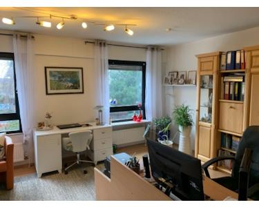 über den Flur im Obergeschoss gelangt man zu den Schlafräumen, ein geräumiges Elternschlafzimmer sowie in das großzügige Gäste,- bzw. Arbeitszimmer (ehemals 2 Kinderzimmer).