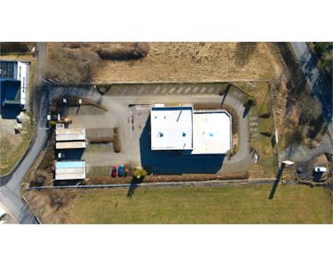 Einfahrt, Parkflächen und Fläche um das Gebäude = gepflastert