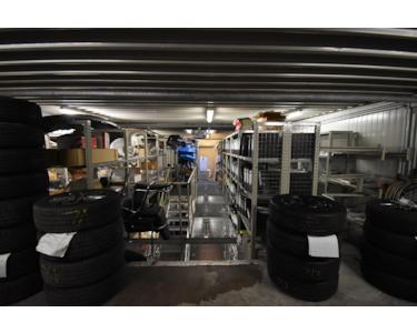 Werkstatt- und Lagerbereich = keramische Spaltplatten im Rüttelbett