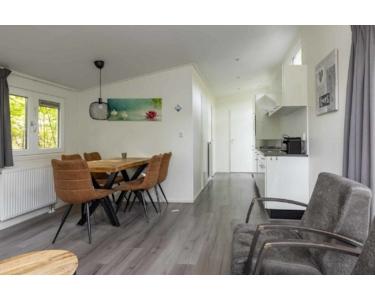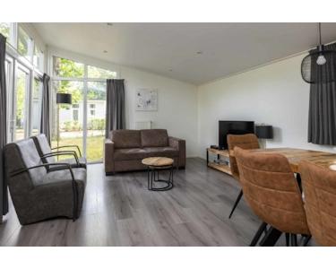 Mit einem komfortablen Essbereich, gemütlichen Sitzmöglichkeiten und passenden Vorhängen ist dieses Haus sofort bewohnbar. Die schräge Decke in Kombination mit den großen Fenstern sorgt für viel Tageslicht und eine geräumige, warme Atmosphäre, in der Sie sich sofort wie zu Hause fühlen werden. Darüber hinaus wurde das Haus kürzlich mit wunderschönen neuen Möbeln ausgestattet, darunter ein Esstisch, Couchtisch, TV-Möbel, Stühle und ein bequemes Sofa.
