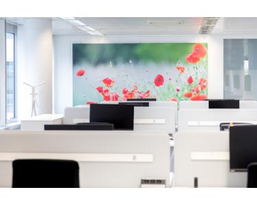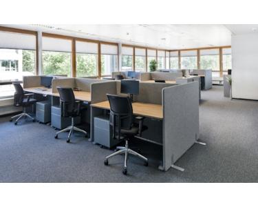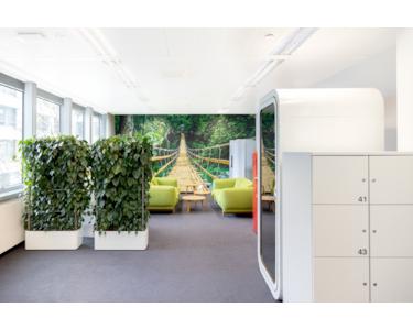 Die Eingangsbereiche sind transparent und großzügig gestaltet. Die Büroflächen sind hochwertig ausgestattet und entsprechen allen Anforderungen an einen modernen Arbeitsraum.