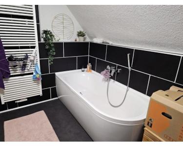 In dem Haus ist eine Einbauküche vorhanden. Das Bad des Hauses verfügt über eine Badewanne und eine Dusche. Selbstverständlich handelt es sich um ein Tageslichtbad. Den Handtuchheizkörper werden Sie zu schätzen wissen.