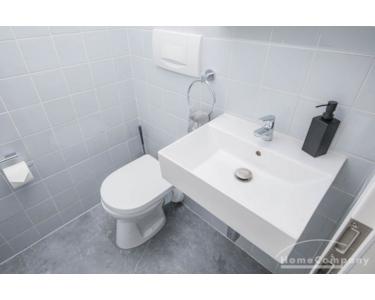 Private Badeinrichtungen im 1-Zimmer-Apartment mit hochwertigen Armaturen, einschließlich einer Badewanne für entspannende Momente.