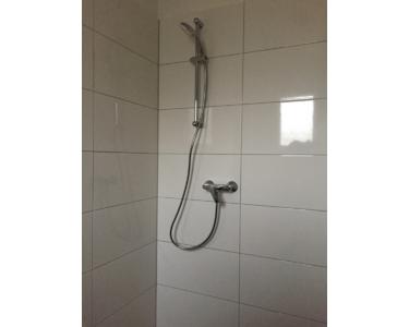 Links befindet sich ein neu gestaltetes Dusche WC mit ebenerdiger Dusche.