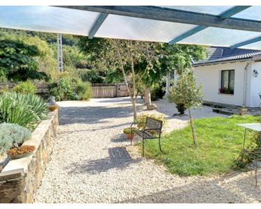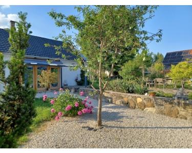 Das Grundstück ist an der Straßenfront mit einem 40 m langen Steinzaun eingefasst, von der Hauptstraße 77 durch zwei Tore zugänglich und umfasst eine Gesamtfläche von 1500 m². Der schön angelegte und gepflegte Garten bietet einen Panoramablick auf die Hügel jenseits des Egervíz-Baches, und der Garten setzt sich in den endlosen Hügeln fort.