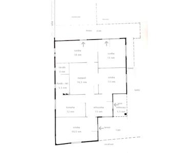 Beosztása: előszoba, 4 szoba + nappali, konyha, fürdőszoba + WC, tároló+kazán. (Adatok a mellékelt alaprajzon)