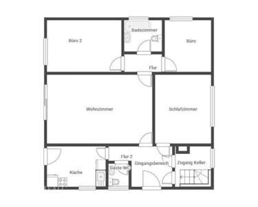 Am Wohnbereich vorbei führt Sie eine Tür in einen Flur, welcher Zugang zu zwei weiteren Räumen und dem Badezimmer bietet. Beide Zimmer werden derzeit als Büro genutzt. Eines der beiden Räume genießt ebenfalls einen direkten Zugang auf den Balkon.