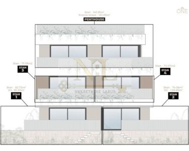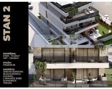 Wir verkaufen eine Zweizimmerwohnung mit Garten S2 im Erdgeschoss eines neuen modernen Gebäudes mit einzigartigem Konzept.