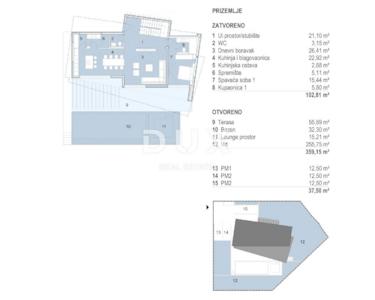 Eine wunderschöne Villa zum Verkauf auf der Insel Pag in Novalja, ca. 500 m vom Meer entfernt, mit Swimmingpool und großem Garten. Die Villa besteht aus einem Erdgeschoss und einer Etage. Es besteht aus: ERDGESCHOSS: Eingangsbereich, Toilette, Wohnzimmer, Küche und Esszimmer, Speisekammer, Abstellraum, Schlafzimmer, Badezimmer, Terrasse, Swimmingpool, Wohnbereich, Garten, 3 Parkplätze. 1. STOCK: Flur, 3 Schlafzimmer, 2 Kleiderschränke, 3 Badezimmer, 3 Terrassen, Treppenhaus, Sozialbereich. Außerdem gibt es einen Infinity-Pool mit Poollounge, einer Liegewiese und einer großen Terrasse. Die verwendeten Materialien sind von höchster Klasse. Keramik und Sanitärartikel, Multi-Klimaanlagen, Fußbodenheizung, Aluminiumschreinerei. Sehr geehrte Kunden, die Agenturprovision wird gemäß den Allgemeinen Geschäftsbedingungen www.dux-nekretnine.hr/opci-uvjeti-poslovanja berechnet