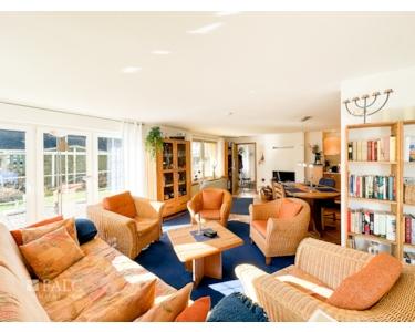 Abgesehen von der wirklich sehr seltenen Lage, ist diese Immobilie zudem in einem sehr gepflegten und liebevoll gestalteten Zustand. Wohlfühlen wird einem hier, zu jeder Jahreszeit, sehr leicht gemacht. Durch die großzügige und offen gehaltene Raumgestaltung werden die Wohnräume der Hauptwohnung angenehm hell mit Tageslicht durchflutet, der gesamte Wohnbereich befindet sich im Erdgeschoss, sodass hier das alltägliche miteinander optimal verbunden werden kann, ergänzt um den direkten Zugang zum pflegeleicht grün angelegten Außenbereich in sonnig südlicher Ausrichtung. Gemeinsame Zeit verbringen, ist hier Qualitätszeit und Freude gleichermaßen und wird an kühleren Tagen durch den Kamin mit einer besonderen Atmosphäre und wohliger Wärme unterstützt. . Der Schlafbereich im Obergeschoss ist ebenfalls angenehm großzügig und hell gestaltet und mit dem Badezimmer en suite ist jeglicher Komfort vorhanden. Ein besonderes Highlight ist der ca. 18 m² große Balkon in sonnig südlicher Ausrichtung, der wie geschaffen dafür ist, den morgendlichen Kaffee, oder das gemeinsame Frühstück dort in Ruhe und in atemberaubend schönen Ambiente, mit dem Rauschen der Ostsee im Hintergrund, zu genießen. Die Einliegerwohnung bietet darüber hinaus einen vollumfänglich ausgestatteten, separaten Bereich für Besuche der Familie, von Gästen und Freunden.