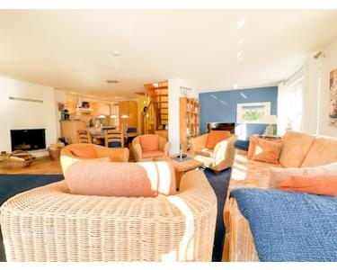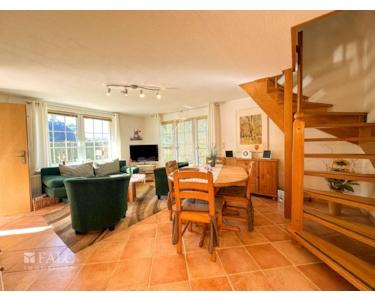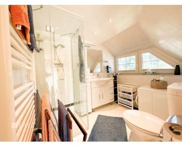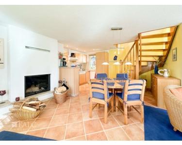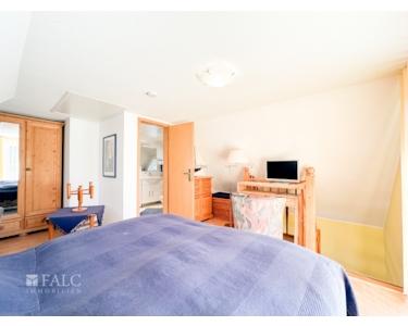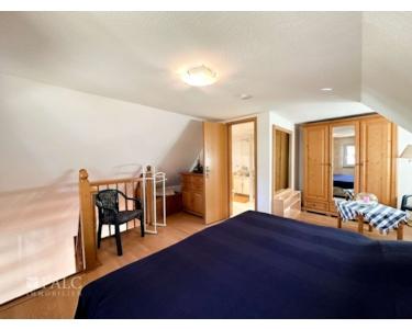 Die Hauptwohnung, wurde 2012 erweitert, und verfügt heute im Erdgeschoß über eine großzügigen, offen gestalteten Wohnbereich mit Kamin, einer Einbauküche und dem Zugang zur Terrasse, über deine Treppe erreicht man das Obergeschoß, in dem der Schlafraum, mit einem Bad en suite und Zugang zu einem nach Süden ausgerichteten Balkon, ist.