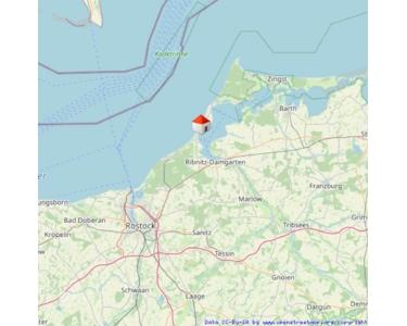 Entfernungen: Dierhagen ca. 3 km, Ahrenshoop ca. 7 km, Ribnitz-Damgarten ca. 13 km, Graal-Müritz ca. 18 km, Prerow ca. 25 km, Rostock Stadtmitte ca. 33 km, Stralsund ca. 50 km, Flughafen Rostock-Laage ca. 58 km, Greifswald ca. 90 km, Binz auf Rügen ca. 100 km, Hamburg ca. 215 km, Berlin ca. 250 km.