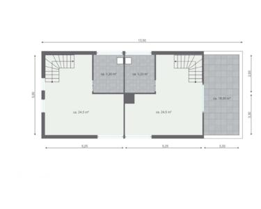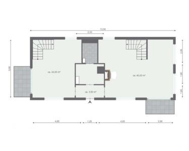 Die Einliegerwohnung ist in der Raumaufteilung der Hauptwohnung gespiegelt, und ebenfalls vollständig ausgestattet.