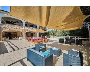 Äußerlich, mit seinem einzigartigen Charme bei Tag und Nacht, bietet es verschiedene Bereiche wie einen großen Grillplatz, mehrere ausgestattete Bereiche zum Genießen und Bewundern des fantastischen Solariums rund um den großen Pool von 14 x 18 Metern, Tiefe 80-180 cm mit einem Badezimmer und Dusche sind dem Poolbereich gewidmet.