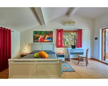 Im ersten Stock finden wir den Schlafbereich der Villa mit sechs Doppelzimmern und zwei Einzelzimmern. Alle Zimmer verfügen über ein eigenes Bad.