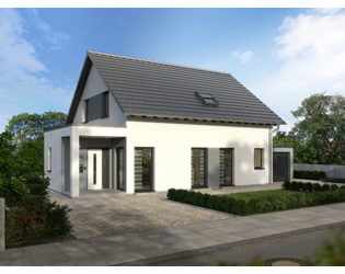 Die Hausarchitektur überzeugt mit Modernität und vielen Details. Die Garage schmiegt sich ans Gebäude an. Hinter der Garage entsteht ein behaglicher, geschützter Terrassenbereich. Die Wohnraumerweiterung im Erdgeschoss setzt sich in einer Terrassenüberdachung fort. Durch die Planung eines Nebeneingangs, kann die Garage auf kürzestem Weg vom Hauswirtschafts-/Haustechnikraum aus betreten werden. Der moderne Hausentwurf bietet auf 170 m² Grundfläche viel Platz für die gesamte Familie. Der Wohn-/Ess- und Kochbereich öffnet sich über 2 große Panorama-Hebeschiebetüren, 2 Terrassentüren und ein bodentiefes Fensterelement zur Terrasse und zum Garten hin. Der Kochbereich kann mit einer Kochinsel ausgestattet werden. Vier Schlafräume, davon einer mit einer separaten Ankleide, und zwei Bäder bringen Wohnkomfort ins Familienleben.