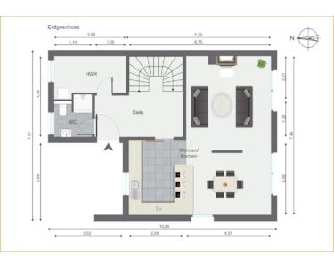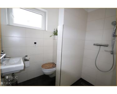 Neben einem Gäste-WC mit Dusche befindet sich im Erdgeschoss auch ein praktischer Hauswirtschaftsraum, der zusätzlichen Stauraum und Funktionalität bietet. Der Abstellraum unter der Treppe ist ideal für die Aufbewahrung der Garderobe und von Utensilien, die nicht tagtäglich benötigt werden.