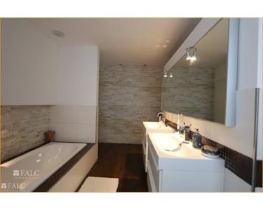 Die großzügige Badewanne im Masterbad, ist ein Ort der Entspannung und des Genusses. Hier können Sie in warmem Wasser versinken und den Tag hinter sich lassen. Die Größe der Wanne erlaubt es Ihnen, sich auszustrecken und den Alltagsstress zu vergessen. Die modernen Armaturen und die stilvolle Umgebung schaffen eine Atmosphäre, die zum Verweilen einlädt. Ein besonderes Highlight des Badezimmers ist das große Doppelwaschbecken für zwei Personen. Hier können Sie sich morgens gleichzeitig fertigmachen, ohne sich in die Quere zu kommen. Die großzügige Ablagefläche und die eleganten Waschbecken verleihen diesem Bereich einen Hauch von Luxus und Zweckmäßigkeit zugleich. Das WC mit Sichtschutz bietet Ihnen Privatsphäre und Komfort in einem stilvollen Rahmen. Und die gemauerte Dusche erzeugt das Gefühl, in einer Wellness-Oase zu stehen.