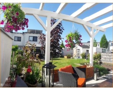 Der Eingangsbereich des Hauses ist mit einer vollständigen Überdachung versehen, die nicht nur Schutz vor Regen bietet, sondern auch einen eleganten ersten Eindruck vermittelt.