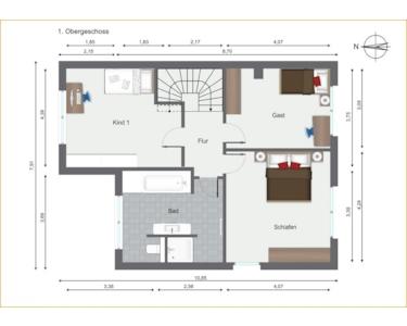 Im Obergeschoss dieses Reihenendhauses eröffnet sich eine Welt der Möglichkeiten, die Ihre persönlichen Vorstellungen und Träume wahr werden lassen. Drei großzügige Zimmer stehen zur Verfügung, und sie warten nur darauf, von Ihnen individuell und kreativ gestaltet zu werden. Egal, ob Sie ein harmonisches Schlafzimmer, ein inspirierendes Büro, ein kreatives Kinderzimmer, ein gemütliches Gästezimmer oder einen funktionalen Hobbyraum schaffen möchten, hier haben Sie die Freiheit, Ihre Ideen in die Realität umzusetzen und Ihr Zuhause ganz nach Ihren Wünschen zu gestalten.