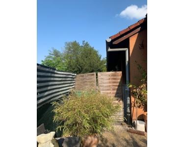 Es handelt sich um die rechte Haushälfte; rückseitig befindet sich auch ein Baukörper.