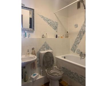 in den Wohn - und Schlafräumen wurde überwiegend Laminat verlegt, die Bäder sind hell gefliest, aus dem Baujahr.