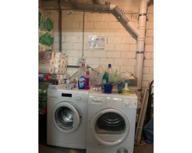 Vom großzügigen Vorraum gelangt man links in den großzügigen Kellerraum, welcher auch über die Anschlüsse für eine Waschmaschine und einen Trockner verfügt.