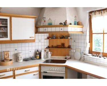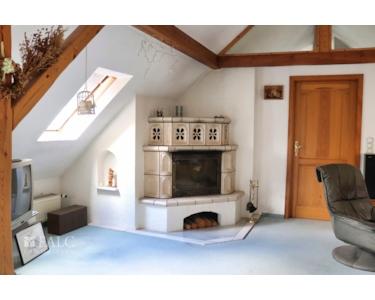 - Wohnbereich im Ober- und Dachgeschoss (ca. 169 m², renovierungsbedürftig) mit 6 Zimmern (davon ein schönes offenes Wohnzimmer mit Kamin im Dachgeschoss), eine offene Küche, Bad und Flur sowie Zugang zum Garten über den Balkon.