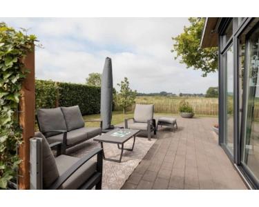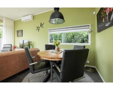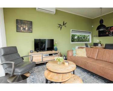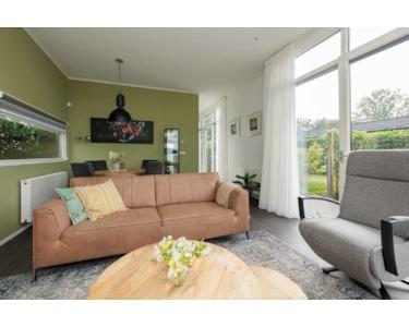 Wenn Sie das Haus betreten, erleben Sie sofort das echte Urlaubsgefühl. Die Kombination aus hohen Decken, reichlich Tageslicht und stilvoller Einrichtung macht die Module 31 besonders gemütlich. Die grüne Wand passt nahtlos zum freien Blick und lässt den Raum endlos wirken. Das eingerichtete Wohnzimmer verfügt über eine Schiebetür zum Garten. Auf diese Weise können Sie im Sommer ein herrliches Innen- und Außenwohnerlebnis schaffen!