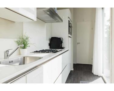 Die offene Küche ist im modernen Stil gestaltet und sehr komplett ausgestattet. Sie verfügt über viel Arbeits- und Stauraum sowie verschiedene Einbaugeräte, darunter eine Mikrowelle mit Heißluftfunktion, eine Spülmaschine und einen Kühlschrank. Durch die (halbhohen) Rückwand ist die Küche nach dem Gebrauch leicht zu reinigen.