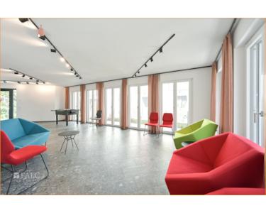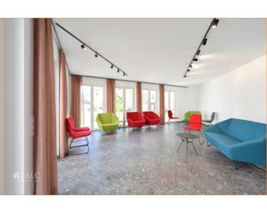 - Großer Gemeinschaftsbereich im Erdgeschoss mit Lounge-Möbeln und Gemeinschaftsküche