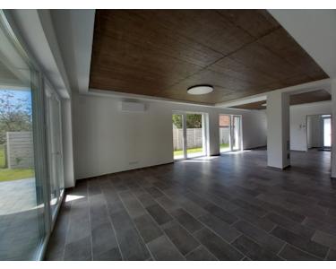 bejárati előtér: 4,4 m2, WC: 2,8 m2, mosókonyha/háztartási helyiség: 7,5 m2, konyha és étkező: 25 m2, nappali: 33 m2, kamra: 4,3 m2, hálószoba/edzőterem/szauna (önálló kijárattal a kertre) 1: 15 m2, fürdőszoba közvetlenül ehhez kapcsolódóan, : 5 m2, garázs: 21 m2, fedett terasz: 21 m2.