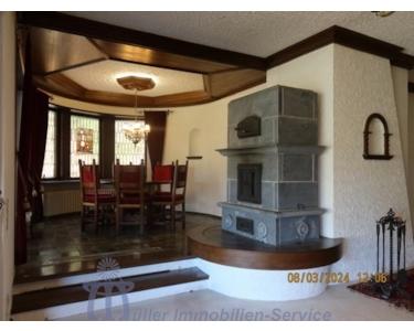 Zusätzlich steht im ca. 52 m² großen Wohn- und Essbereich (Esszimmer mit Runderker und Bleiverglasung) ein gemauerter Specksteinofen mit Backfach zur Verfügung, der in dem großzügig aufgeteilten Raum eine wohlige Wärme und viel Atmosphäre verbreitet.