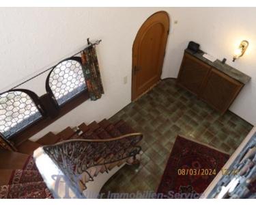 - Innentreppe zum DG: großzügig gewendelte Betontreppe mit massiven Holzstufen