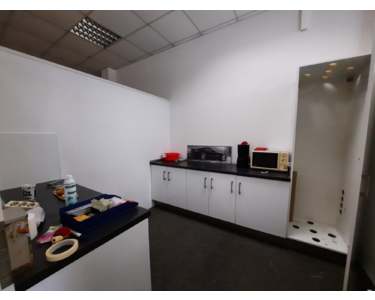 Die Gewerbeeinheit ist in zwei Bereiche unterteilt, was eine flexible Nutzung ermöglicht. Der erste Bereich eignet sich ideal für einen Empfangsbereich, während der zweite Bereich perfekt als Beratungs- oder Besprechungsräume genutzt werden kann.
