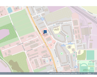 Des Weiteren ist ein Baustoffhandel in der Nähe ansässig, der die Bewohner mit Baumaterialien und Heimwerkerbedarf versorgt. Für sportliche Aktivitäten steht das Sportforum inklusive Hotel zur Verfügung, wo Bewohner ihre Freizeit verbringen können und auch Übernachtungsmöglichkeiten für Gäste bereitstehen.