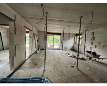 Der gesamte Wohnbereich wird mit einer einheitlichen Bodenfliese bestückt. Die Schlafzimmer sowie die Ankleide können nach Wunsch ebenfalls mit Bodenfliesen oder einem Domestikboden verlegt werden. Alle Räume des Wohnhauses verfügen über eine Fußbodenheizung.
