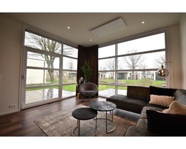 Herrlich geräumiges Wohnzimmer mit Blick auf das Wasser. Die großen Fenster sorgen für viel Licht und die Schiebetüren öffnen sich auf die Terrasse. Schöne Fußböden in einer warmen Holzfarbe und dimmbare Einbaustrahler an der Decke. Das Haus wird mit Infrarot-Wärmepaneelen beheizt, die im gesamten Haus verwendet werden. Das Wohnzimmer hat auch eine Split-Klimaanlage, die sowohl im Sommer als auch im Winter sehr angenehm ist. Die Einrichtung ist sehr schön und modern. Sie werden sich hier wie zu Hause fühlen.