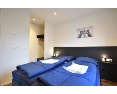 Dieses Schlafzimmer ist ein bisschen kleiner. Es hat 2 einzelne Boxspringbetten und 2 Schränke zum Verstauen Ihrer Sachen.