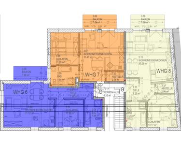Insgesamt stehen acht Wohnungen zur Verfügung mit Wohnflächen zwischen 58 - 109 m². Davon sieben 2-Zimmer Wohnungen und im Erdgeschoss eine 4-Zimmer Wohnung.