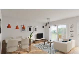 - Beheizt wird das Gebäude über eine Luftwärmepumpe, die Räume über eine Fußbodenheizung, so dass in Verbindung mit der Außendämmung eine Energieeffizienz von A+ erreicht wird.