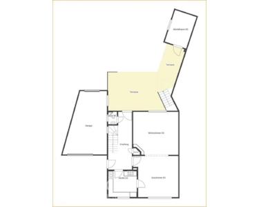 Vom Empfang gelangen Sie in die voll eingerichtete Küche und in das offen gestaltete Wohn-Esszimmer. Die beiden Räume können Sie, ebenso wie im ersten Obergeschoss mit geringem Aufwand voneinander trennen. Das Gäste WC in dieser Ebene liegt günstig neben der Terrassentüre der grossflächig überdachten Terrasse mit angrenzendem Garten und Garten-/Gerätehaus.